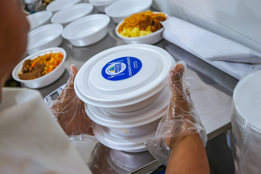 Para ter acesso às refeições, é necessário estar inscrito no Cadastro Único, dentro dos critérios de pobreza. A distribuição ocorre por ordem de chegada, e cada refeição pesa cerca de 630 gramas, composta por proteína, dois acompanhamentos, guarnição, salada, suco e sobremesa.
