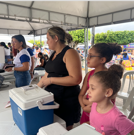 “Eu fiquei sabendo da campanha de vacinação aqui na praça, e minhas meninas estavam precisando tomar as vacinas da influenza. Então aproveitei e vim logo”, disse ela.
